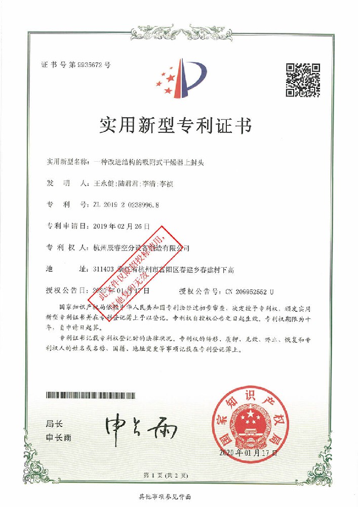 一種改進結構的吸附式干燥器上封頭